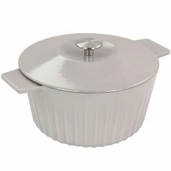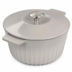 Martha Stewart Enameled Cast Iron 3 Quart Embossed Stripe Dutch Oven With Lid In Warm Grey