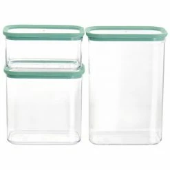 Martha Stewart Gibson Everyday 3 Piece Rectangular Plastic Stackable Container Set In Mint Green