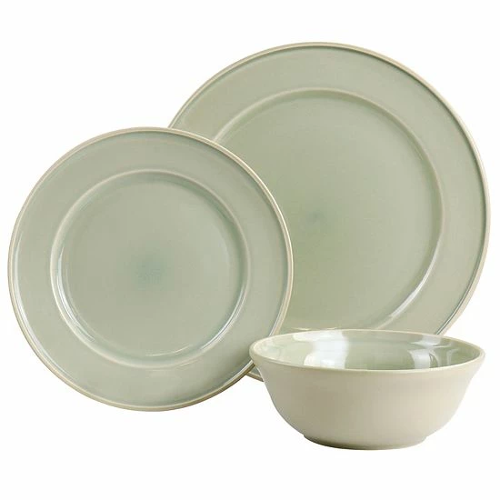 This 12 piece dinnerware set by Martha Stewart is sleek, durable, and will add a modern look to your table. Constructed with stoneware for long lasting use, these dishes come with service for four, including cereal bowls, salad plates, and dinner plates. Outer material has a matte finish while the food surface of these dishes is finished with a beautiful glossy reactive glaze. The reactive glaze process ensures that no two dishes are exactly alike, making each piece unique. Dishwasher and microwave safe dishes for easy reheat and fast clean-up.
