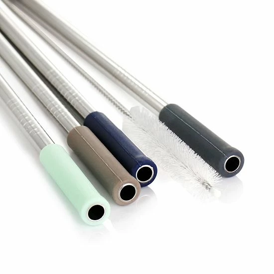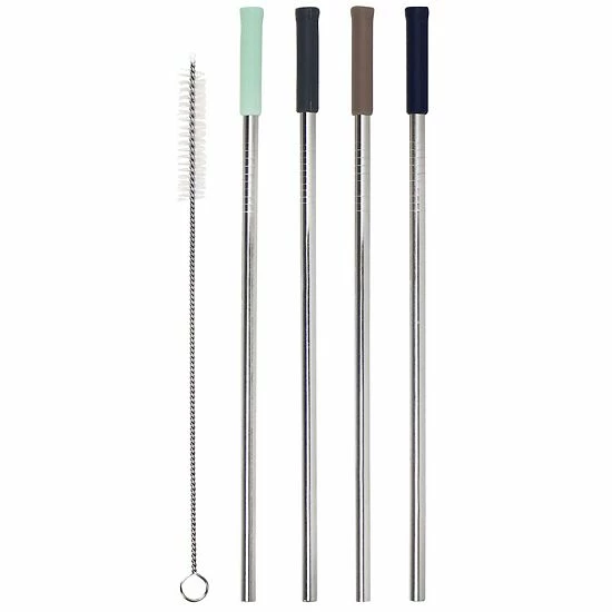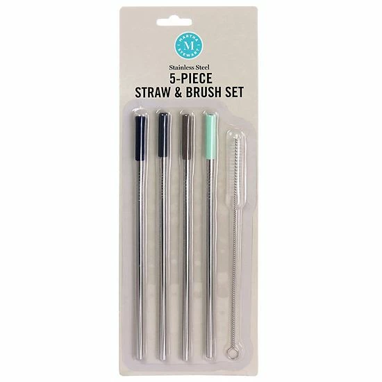 The Martha Stewart 5 piece stainless steel straw set is the perfect ecologically-responsible alternative to your everyday drinking habits. These straws are designed with removable silicone tips for smooth sipping or to avoid metal to teeth contact. Made with 18/8 premium stainless steel that is dishwasher safe and does not have the metal aftertaste. Includes a cleaning straw to ensure This sleek set is perfect for sipping in style or on-the-go. And it doesn’t hurt that they’re reliable and reusable!