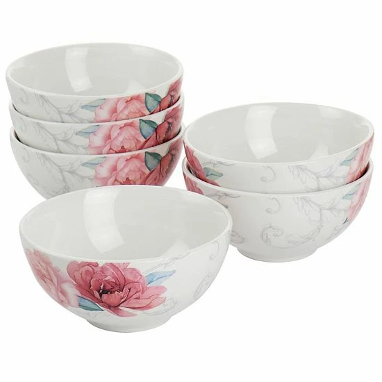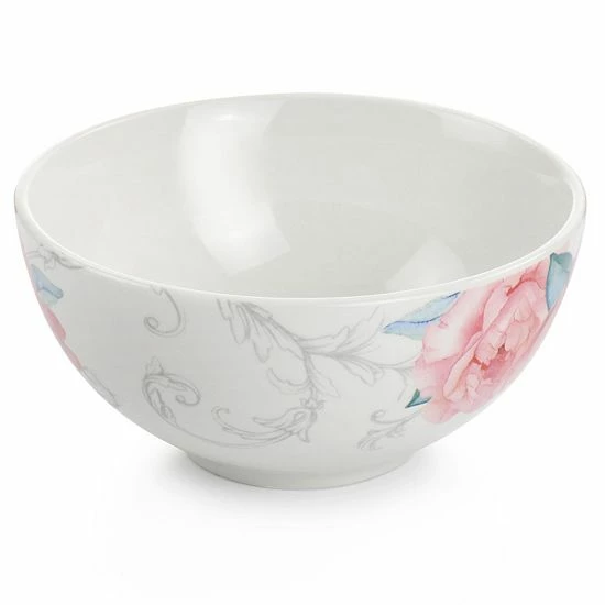 This beautiful floral designed cereal bowl set by Martha Stewart is the perfect addition to add some elegance to your home! Constructed with fine ceramic, these bowls are long lasting, durable, and dishwasher and microwave safe- making them easy to clean and reheat food in. Pink flowers and swirled stems adorn the outside creating the perfect combination of design and simplicity. These bowls are perfect for both every day use and to take out when you have guests to serve!