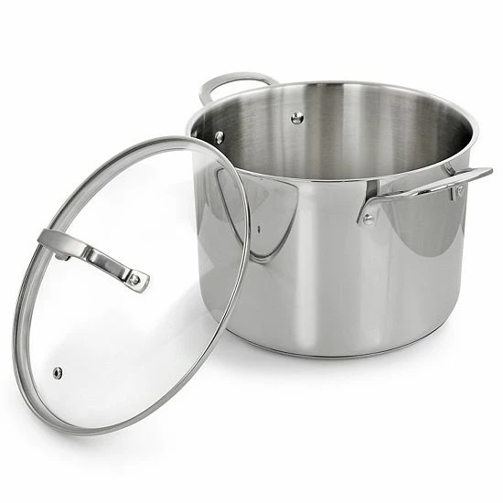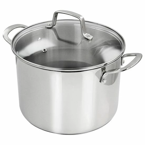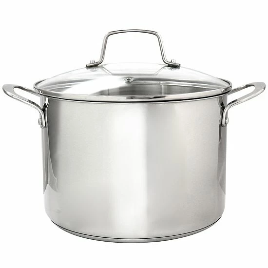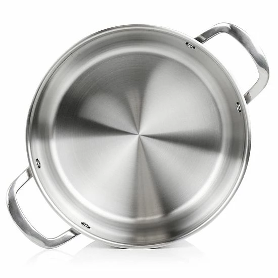Martha Stewart’s name is synonymous with superior function and elegant style and this Stainless Steel Dutch Oven embodies both. Mirror polished finish with tempered glass lid that features a vent hole. The interior is etched with fill lines for easy measurements, so soups, risottos, and braises can all be made fuss-free as well. The construction is compatible with all stovetops, including induction, ovens, and broilers (glass lid safe up to 350°F), and of course – dishwashers.