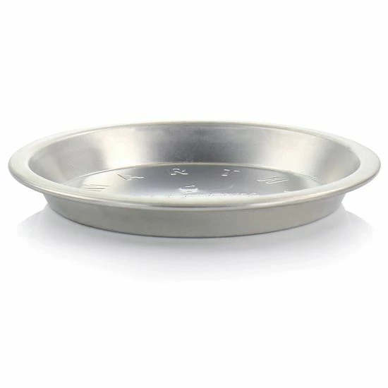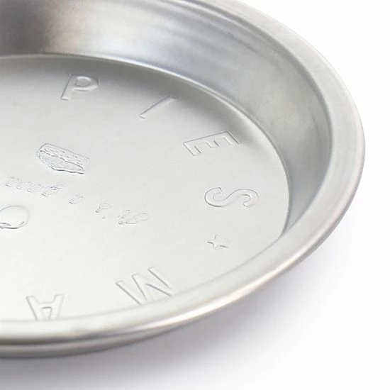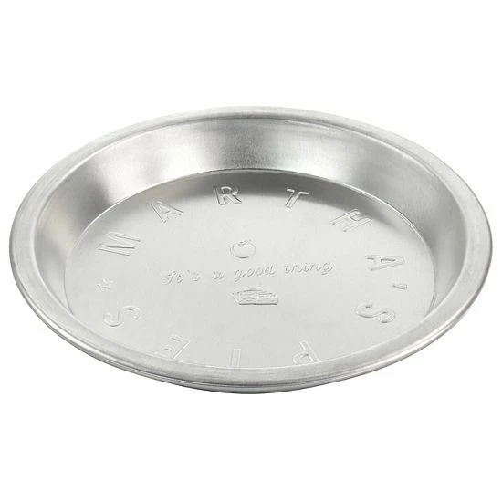 The Martha Stewart 9 Inch Round Embossed Aluminum Pie Pan in Silver brings good vibes to everyday baking. This rimmed pie baking pan is made of durable aluminum that allows for efficient even heating. The embossed bottom gives the pie pan visual appeal as each slice served to guest. For proper care and long lasting quality, hand wash the pan after each use. Enjoy an array of sweet, tart and savory pies or quiches.