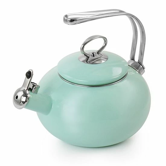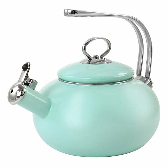 Part of the Elevated Living collection by Martha Stewart, this stove top tea kettle is designed to inspire creativity and bring a pop of color to any kitchen. This stylish kettle has an easy grip handle and a flip up whistle cap. Removable top makes this kettle easy to clean, while the glossy coating adds an elegant and refined look to your every day kitchenware. Constructed with high quality steel and coated in enamel for even and fast heating. This kettle is suitable for all stove tops and should be hand washed only.