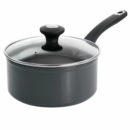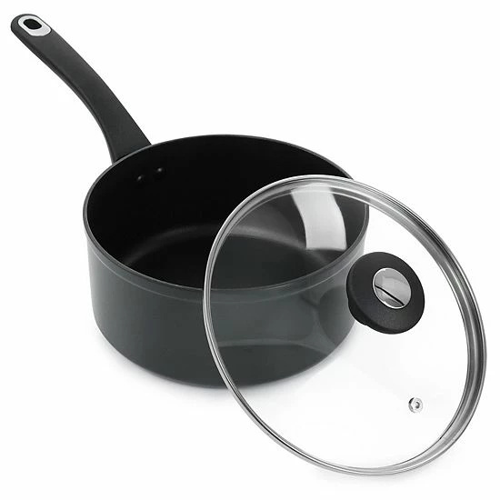 This Martha Stewart 1.6 Quart saucepan is made with durable forged aluminum that is perfect for making soups, sauces, and boiling pasta. This saucepan has a nonstick interior coating, allowing you to cook healthier with less oil and easy cleanup. Includes a tempered glass vented lid, which allows safe monitoring of cooking process. Soft touch handle stays cool for easy transfer from burner to burner or stovetop to counter. Compatible with all stovetops, including induction!