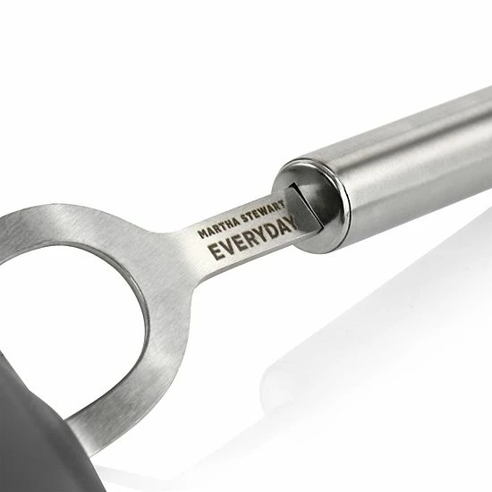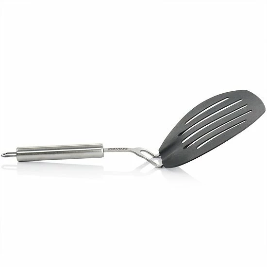 The Martha Stewart slotted turner is designed with a wide width for flipping larger food items. The perfect size for flipping pancakes, omelets, French toast, grilled cheese, and more. Constructed with a nylon head that won’t scratch nonstick cookware, and a hollow stainless steel handle that provides a lightweight and comfortable grip. Heat resistant up to 400 Degrees Fahrenheit.