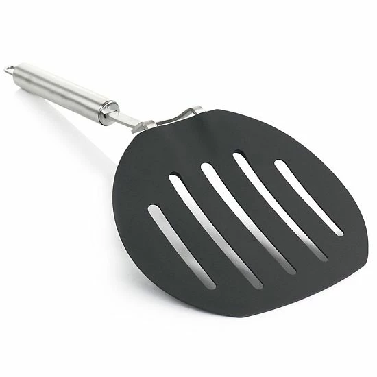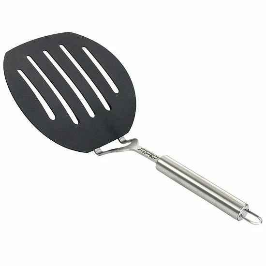 The Martha Stewart slotted turner is designed with a wide width for flipping larger food items. The perfect size for flipping pancakes, omelets, French toast, grilled cheese, and more. Constructed with a nylon head that won’t scratch nonstick cookware, and a hollow stainless steel handle that provides a lightweight and comfortable grip. Heat resistant up to 400 Degrees Fahrenheit.
