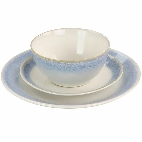 Dress up your table with this reactive glaze stoneware dinnerware set by Gibson Everyday. Formal or relaxed, your table setting sets the tone for your entire occasion. Put your unique style on display with this set, designed with a reactive glaze colored rim that will showcase your recipes and make every day dining more special. Constructed of durable stoneware for long lasting use, these dishes are microwave and dishwasher safe for fast reheat and easy clean up.