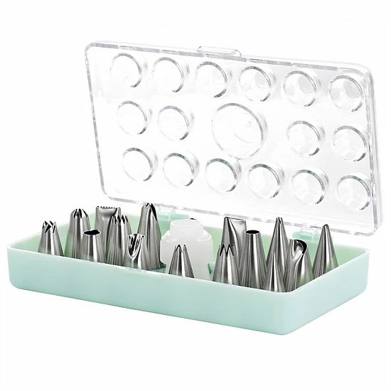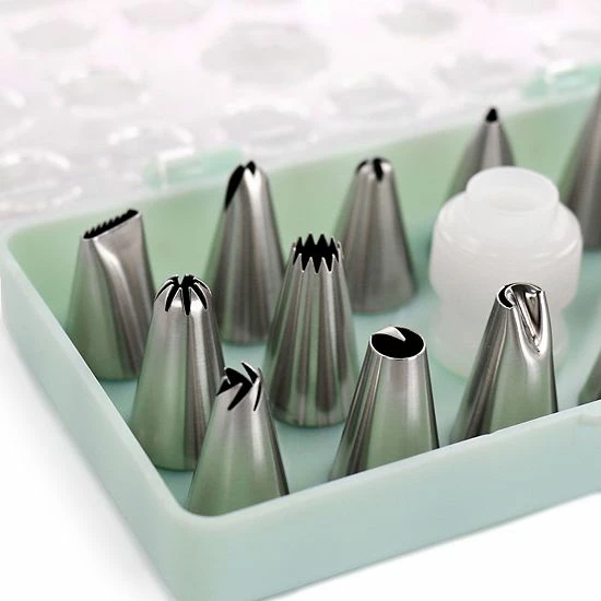 Take cake decorating to the next level with this set of 16 individually shaped piping nozzles. The Gibson Everyday cake deco set comes with a carry box that holds all your nozzles in one place so as not to get lost. Plus a coupler is included, making it easy for you to switch out nozzles as you go; change up your designs on the spot! Each nozzle has a different piping shape and size to offer a variety of unique deco options. Whether you are just starting out, or need to upgrade your current nozzles, this set comes with everything you need to get creative!