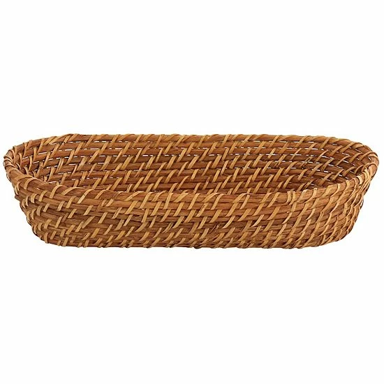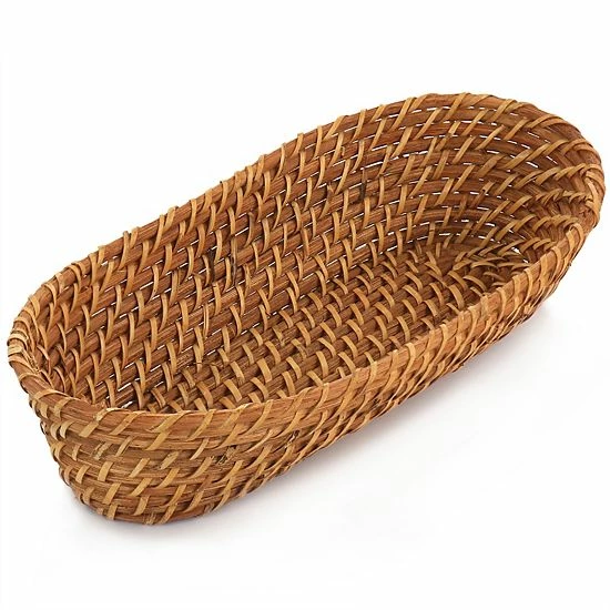 Bring your serving game to the next level with the Gibson Everyday rattan serveware collection! This oval bread bowl is constructed of 100% rattan material in a basket woven style. The lightweight design allows you to carry from place to place with ease. Serve your home baked bread, rolls, baguettes, or other side dish in style with this stand out basket. This bread basket is perfect for both indoor and outdoor dining, wipe clean with damp cloth.