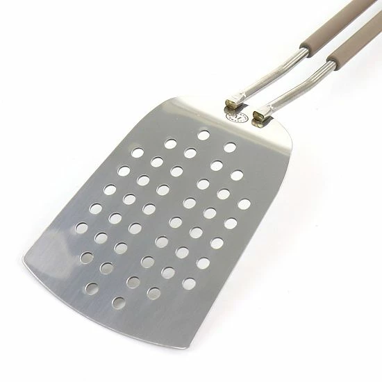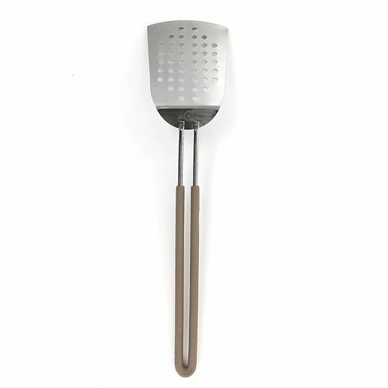 The Gibson Everyday Stainless Steel Slotted Spatula in Gray was designed to drain liquids while lifting and keeps food from sticking. The durable polished Stainless Steel construction is built to last. The extra long loop handle with heat resistant silicone wrap keeps hands away from heat. This Gibson Everyday utensil is just one of amazing home kitchen pieces you can get for your home kitchen. Complete the entire collection to truly feel right at home.