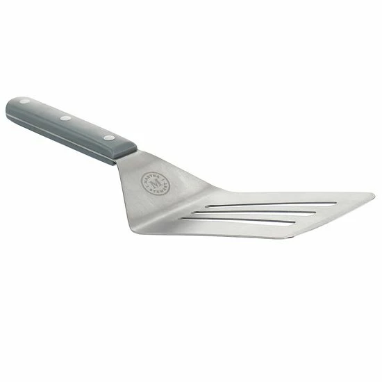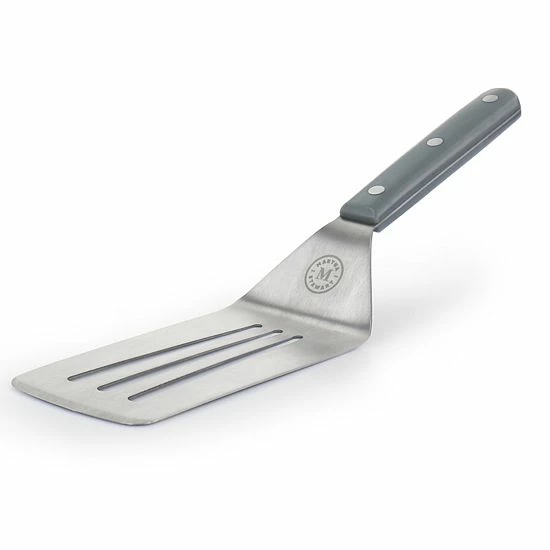 The Martha Stewart High-Carbon Stainless Steel Slotted Turner in Gray brings clean and efficient style to everyday kitchen use. Features an heat resistant handle for a comfortable grip while cooking. Dishwasher safe for easy and convenient cleaning. Perfect to use on skillets, griddles, and grills.