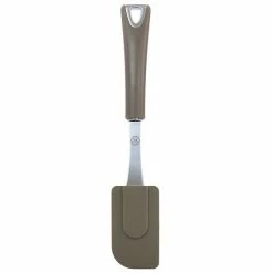 Scrape clean any mixing bowl with the Martha Stewart Silicone Scraper in Warm Gray with Bakelite Handle. Features a flexible silicone spatula with a bakelite handle. The Silicone material is heat resistant up to 445 degrees F for high heat cooking jobs. The Soft silicone is even safe to use over nonstick surfaces and prevents scratching. Dishwasher safe for fast and easy cleaning. Ideal for scraping out sauces, batter, dough, and other ingredients from mixing bowls, cooking pans or bakeware.