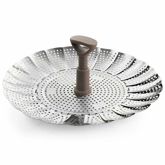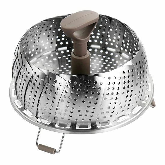 The Martha Stewart folding steamer is versatile and convenient. Featuring a foldable design, adjustable legs, and an extendable handle, this insert can make any pot or pan into a steamer. Use this insert in pots with a diameter from 7in to 11in. Made of durable nonreactive stainless steel material and BPA free silicone feet that won’t scratch pans and is compatible with nonstick surfaces. Ideal for steaming veggies and healthy cooking at home.