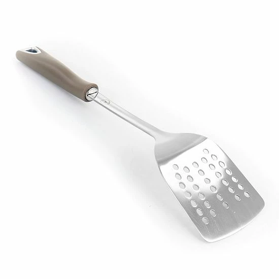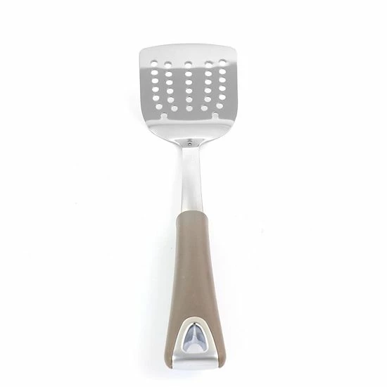 Lift and drain your foods with ease using the Martha Stewart Stainless Steel Slotted Turner in Grey. Constructed of strong durable brushed stainless steel. Featuring an ergonomic heat resistant handle that provides comfort and control. It is the ideal utensil for lifting food and draining excess oil or liquid. This Martha Stewart utensil is just one of the amazing pieces you can get for your home kitchen. Complete the entire collection to truly feel right at home.