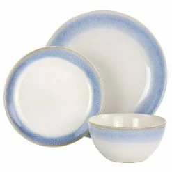 Martha Stewart Gibson Everyday 12 Piece Reactive Glaze Rimmed Stoneware Dinnerware Set In Blue